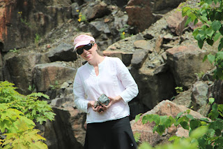 Finding flecks of garnet in the rocks.